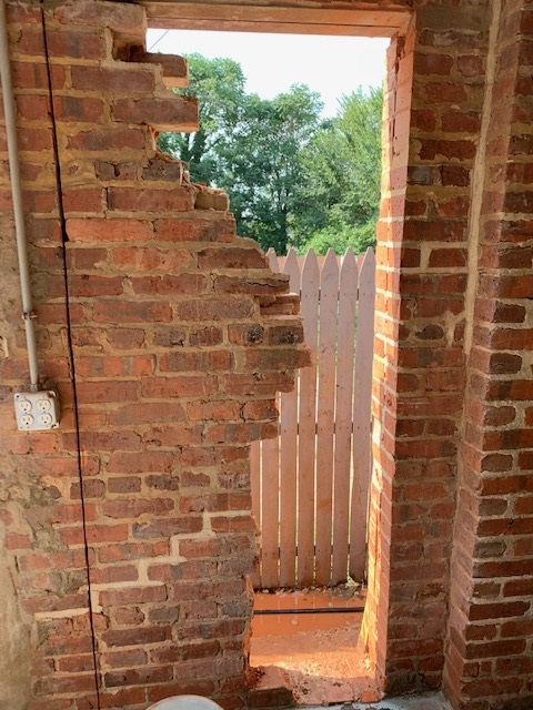Saw cut brick & block as needed for new door opening. Install new lentils. Set new door frames. Remove debris as work was performed. Over head door & personal door frame installed.
